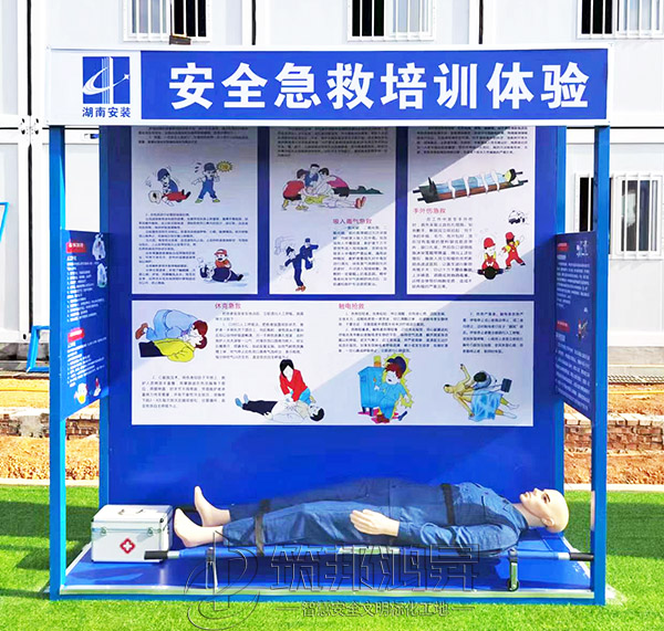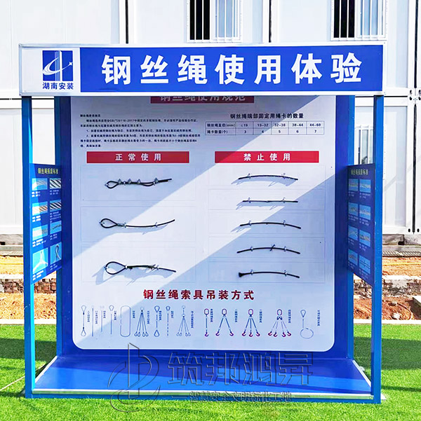 此次合作的安全教育培訓(xùn)體驗區(qū)建設(shè)包括了班前講評臺、鋼絲繩使用體驗、安全防護用品展示體驗、綜合用電體驗、安全帶使用體驗、安全急救培訓(xùn)體驗、移動式平臺體驗、洞口墜落體驗、消防器材柜、安全帽撞擊體驗等。標(biāo)準(zhǔn)款采用鋼結(jié)構(gòu)組裝式設(shè)計,高溫烤漆不易褪色,顏色鮮艷更美觀,設(shè)計制作安裝全包。筑邦安排專車送貨到衡陽工地,同時安排了專業(yè)人手迅速到工地加班加點完成安裝。