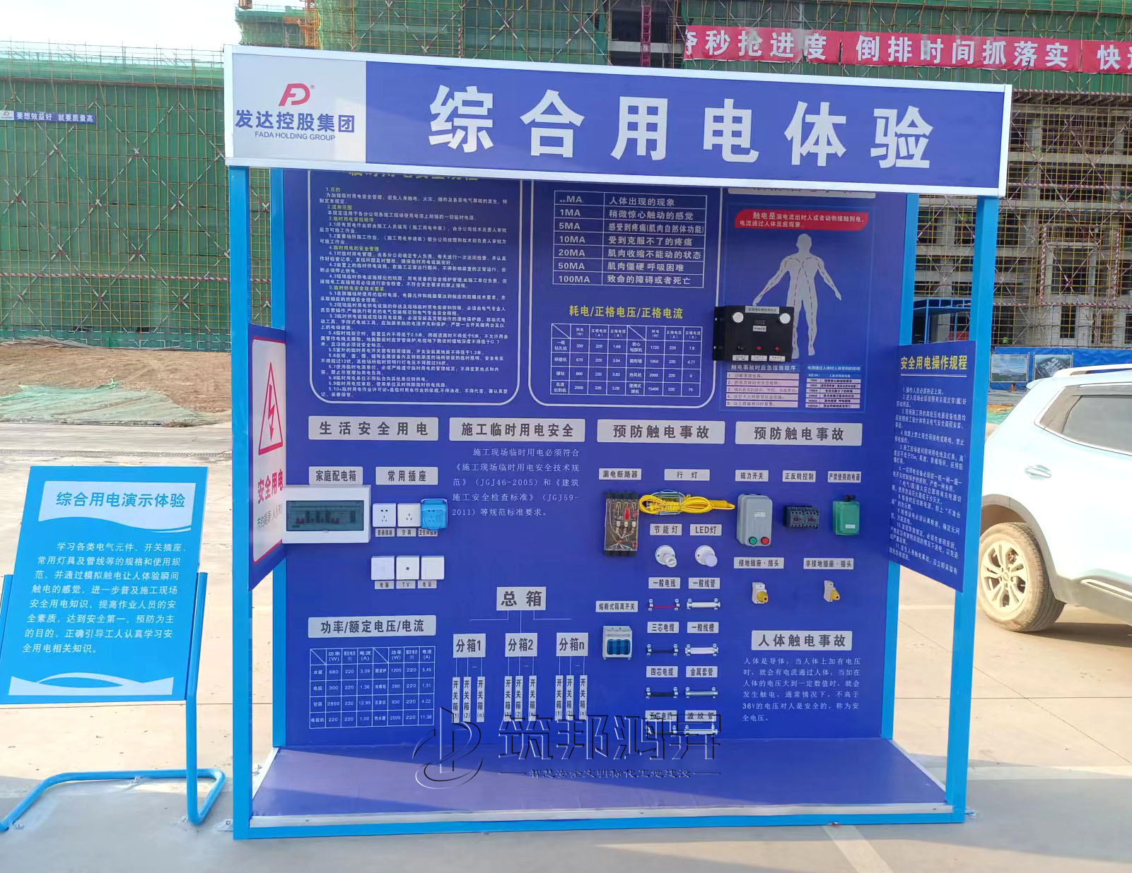 近日,發(fā)達(dá)控股集團(tuán)在江西景德鎮(zhèn)承建的項(xiàng)目工地與筑邦鴻昇合作,采購了十幾項(xiàng)安全體驗(yàn)設(shè)備和安全標(biāo)化產(chǎn)品,用于產(chǎn)業(yè)工業(yè)的施工安全教育與培訓(xùn)。安裝完驗(yàn)收后,該項(xiàng)目的相關(guān)負(fù)責(zé)人在現(xiàn)場十分滿意。