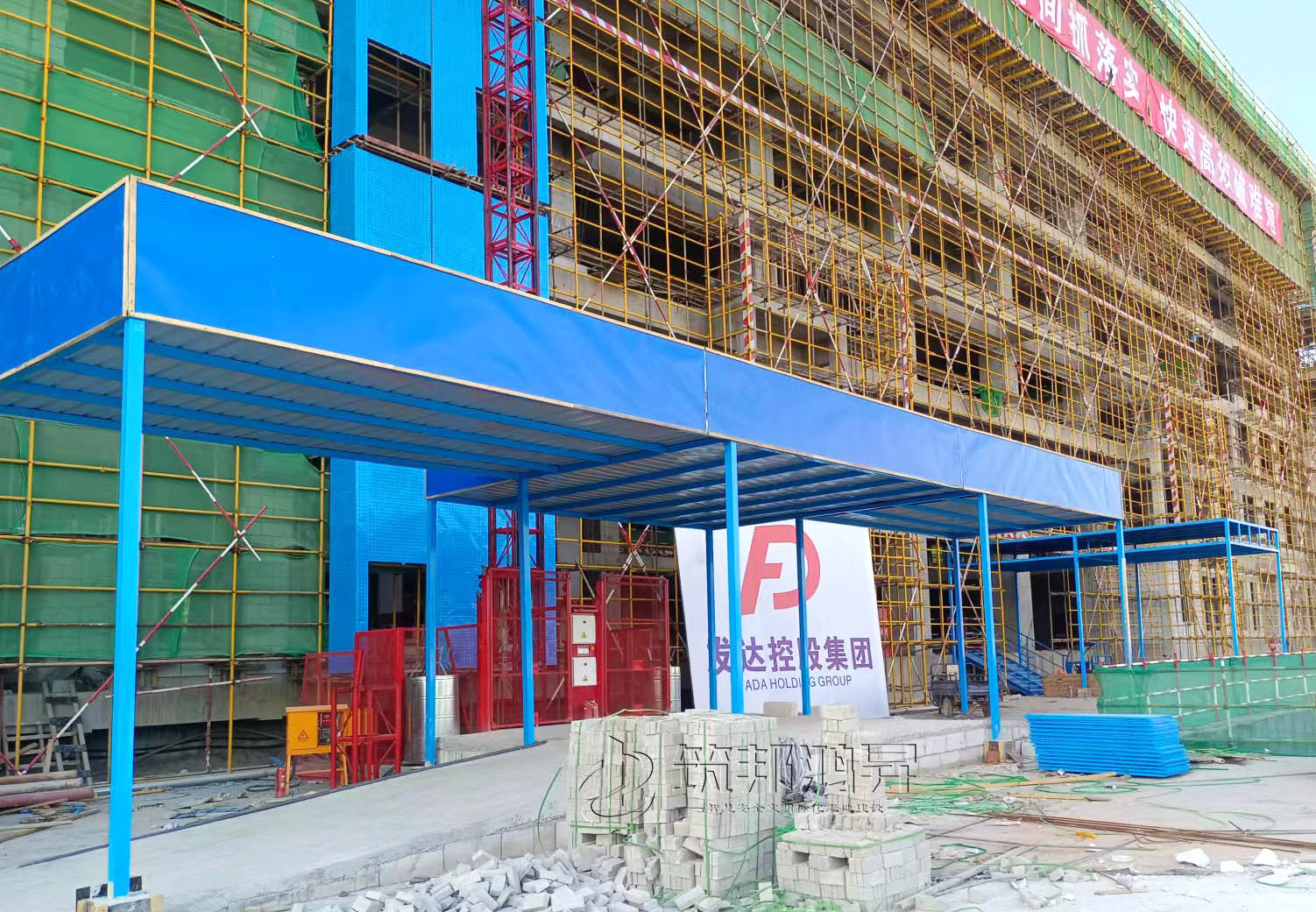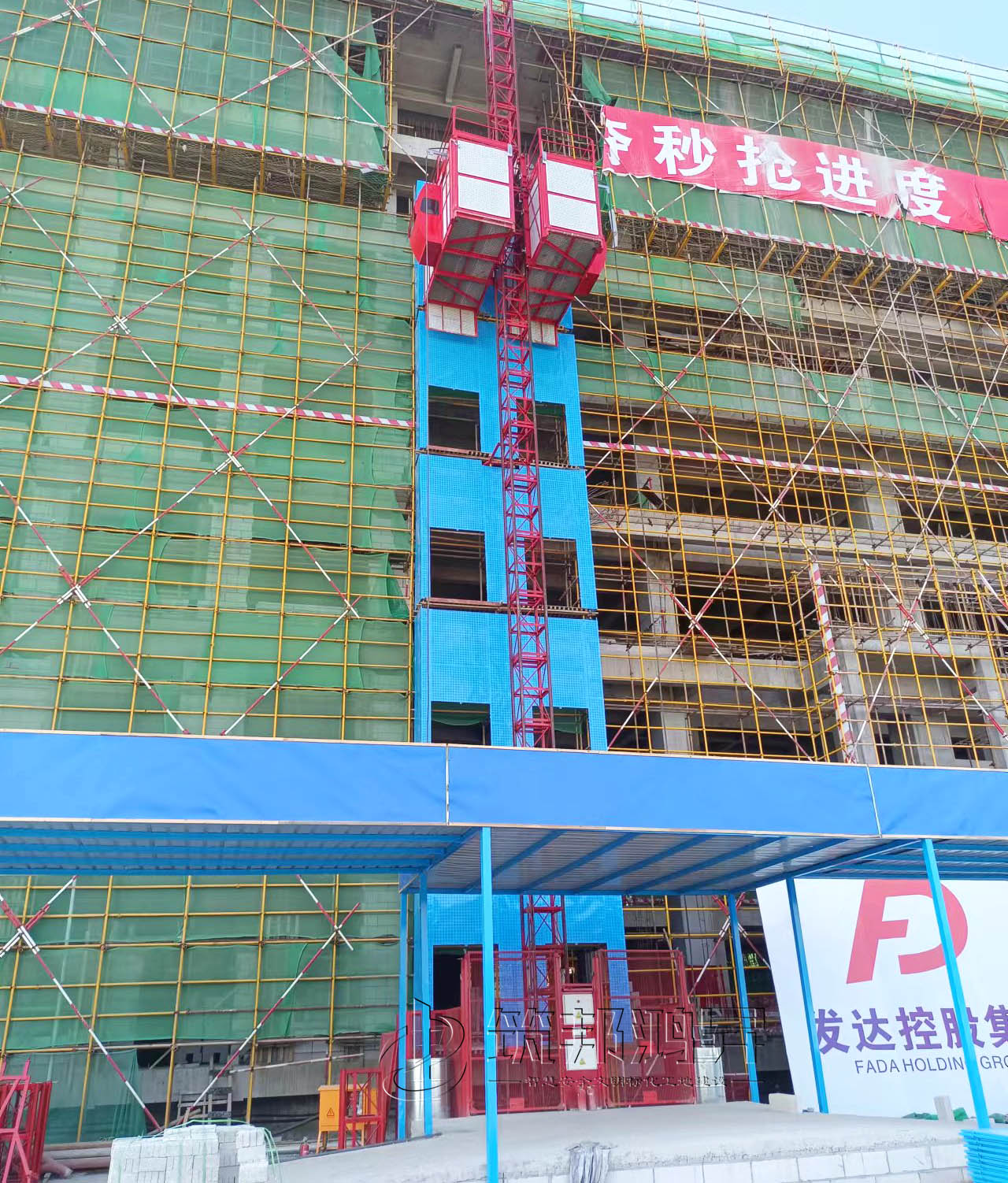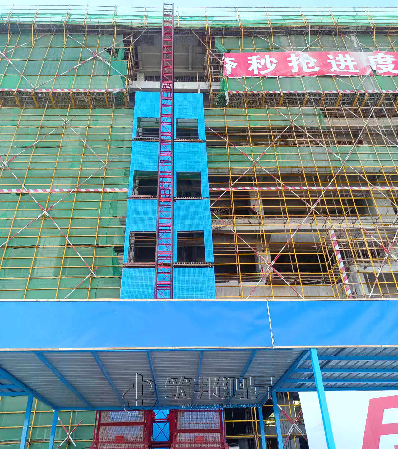 此次合作的安全標(biāo)化產(chǎn)品還包括了樓層防護(hù)門、人貨電梯防護(hù)棚等設(shè)備。筑邦安排專車送貨到江西工地,同時(shí)安排了專業(yè)人手迅速到工地加班加點(diǎn)完成安裝。